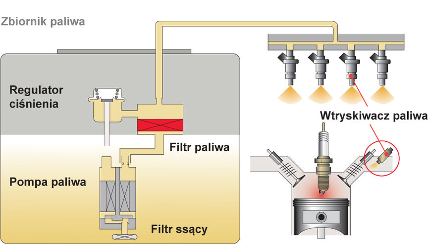 W takim przypadku silnik może się zachować tak, jakby kończyło się paliwo: następuje spadek osiągów, samochód nie chce przyspieszać, silnik gaśnie i nie można go ponownie uruchomić.