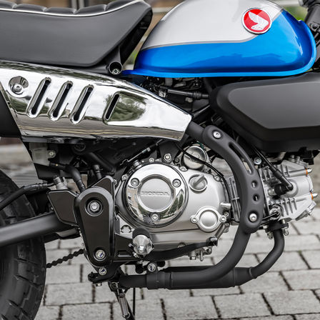 Uwolnij czystą przyjemność z jazdy motocyklem. Właśnie taka idea przyświecała inżynierom, którzy projektowali Hondę Monkey. Gdy po raz pierwszy zobaczysz motocykl Monkey z jego niepowtarzalną stylistyką, trudno powstrzymać uśmiech. Kiedy pierwszy raz wsiądziesz na Monkey'a, gwarantujemy, że będziesz miał na twarzy ogromny uśmiech, szczególnie za sprawą jego pełnego charakteru silnika. To prawda, że motocykl bez problemu można spakować na tylny bagażnik kampera, a jego gabaryty sprawiają, że zwinnie przeciska się przez gąszcz miejskich korków. Jednak Monkey to przede wszystkim radość z prowadzenia jednośladu. Na tym polega jego piękno.