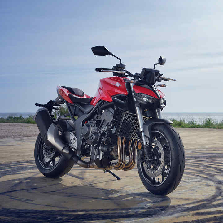 Nasza rodzina Hornet jest kompletna, a przywódca tego roju szerszeni jest naprawdę mocny. Nowy model CB1000 Hornet jest wyposażony w czterocylindrowy silnik, który ma najlepsze osiągi w klasie motocykli typu naked. Przepustnica Throttle By Wire zapewnia precyzyjną kontrolę, a podwozie wyposażono w regulowany widelec Showa SFF-BP USD o średnicy 41 mm i tylny amortyzator Pro-Link. Precyzyjne podwójne reflektory projekcyjne LED przywodzą na myśl nieokiełznaną, bezkompromisową uliczną walkę. Pełnokolorowy 5-calowy ekran TFT i aplikacja Honda RoadSync zapewniają inteligentne połączenie. Gotowy do pełnego ataku?